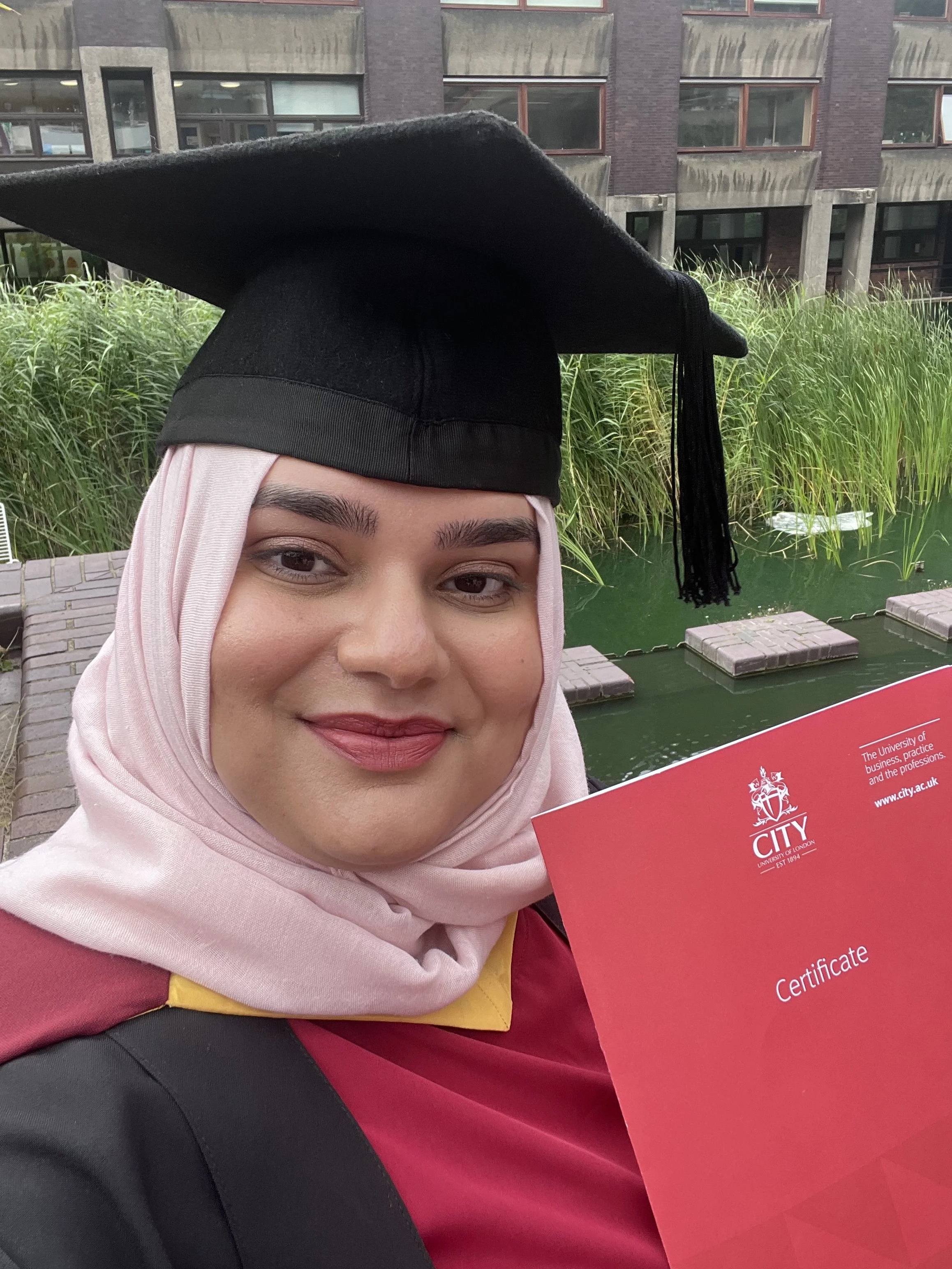 Graduating with First Class Honours Degree in BSc (Hons) in Sociology with Psychology at City, University of London after attaining a distinction on her undergraduate foundation programme in Humanities, Law and Social Sciences